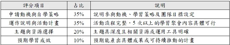 本次自學升級計畫為學務處推動的「六好策略」中的好住x好學策略,共計6組團隊報名,經過初審及4位委員評分審查,獲選補助團隊如以下公告,恭喜獲選團隊也期待同學能夠成功升級!